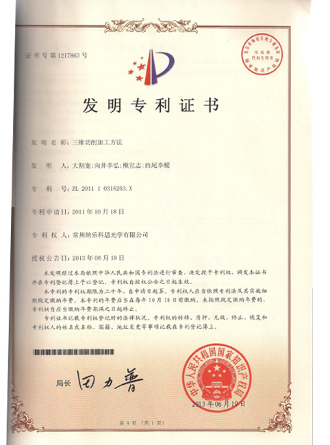 高新技術製品証書